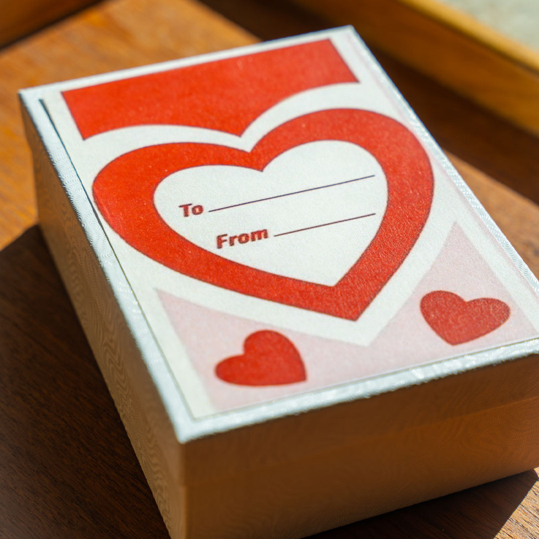 Choose a small box for one small heart, or large box for two small hearts or one large heart. Enter the to and from names in the text box when ordering.