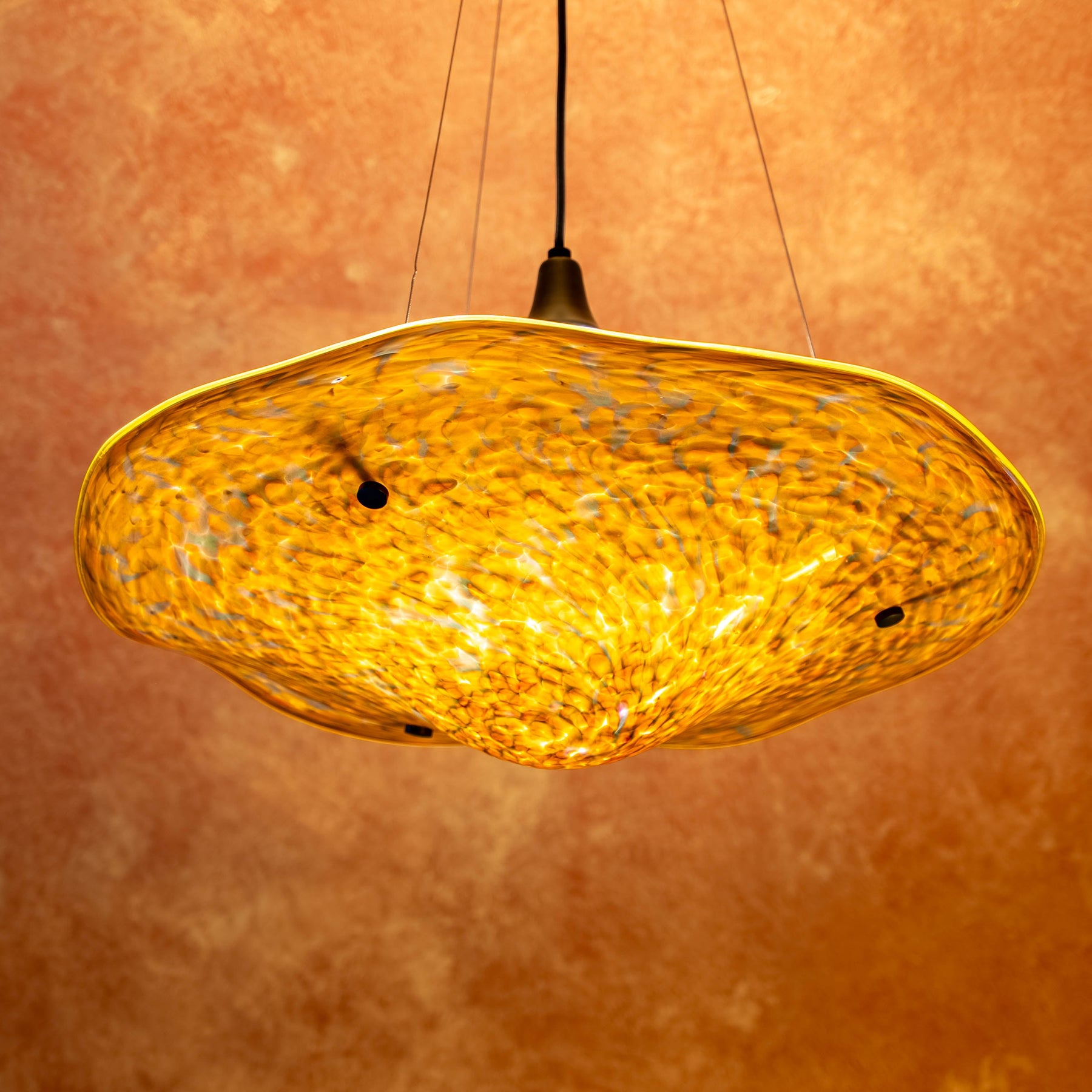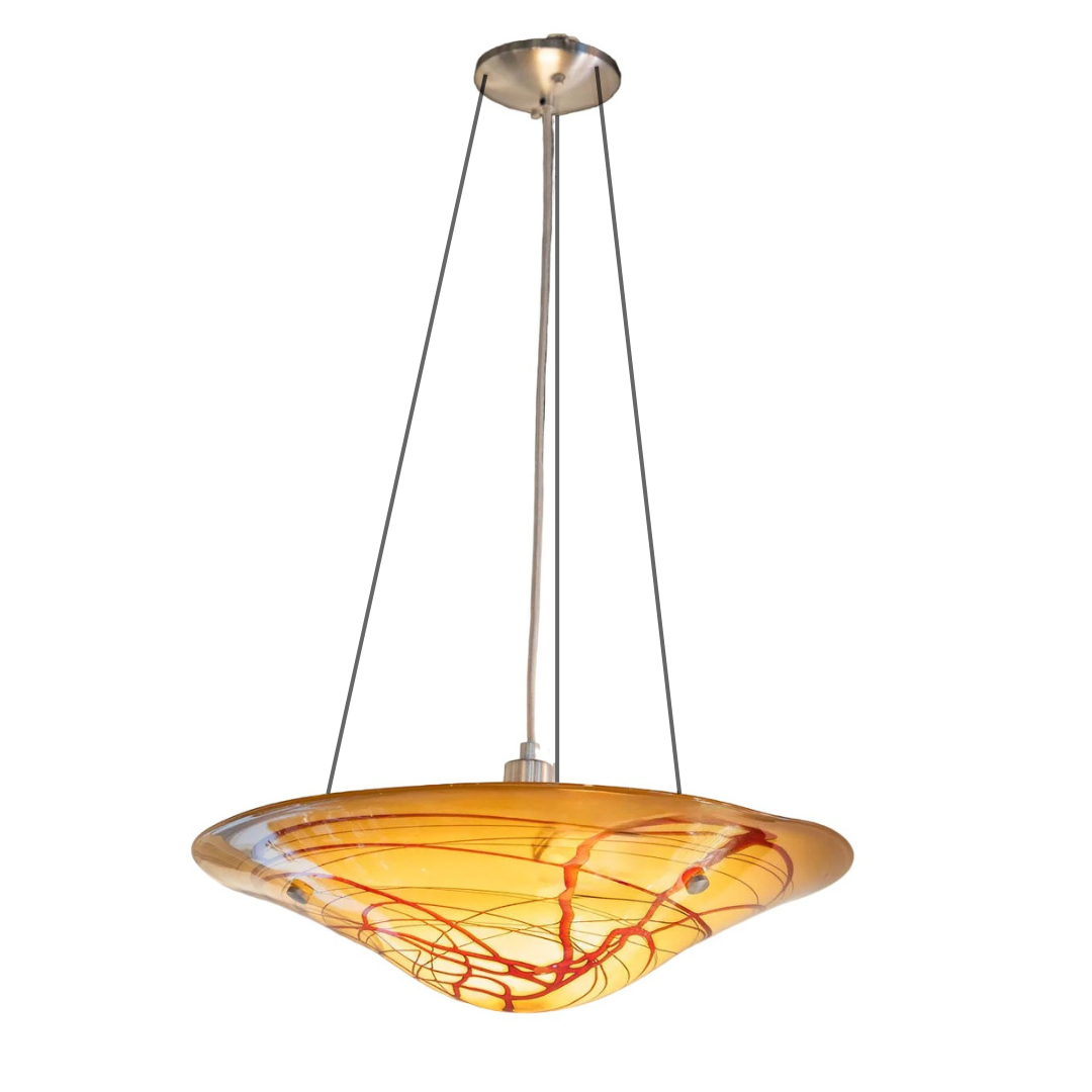Adjustable glass platter-style inverted pendant. Slope ceiling adaptable.