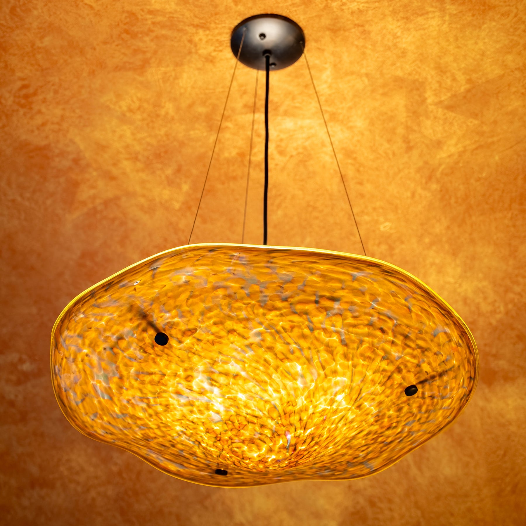 Our art glass is hand created and not manufactured. Small blemishes in the glass and variances in size and shape of the shades and art glass pieces are inherent to hand-blown glass.